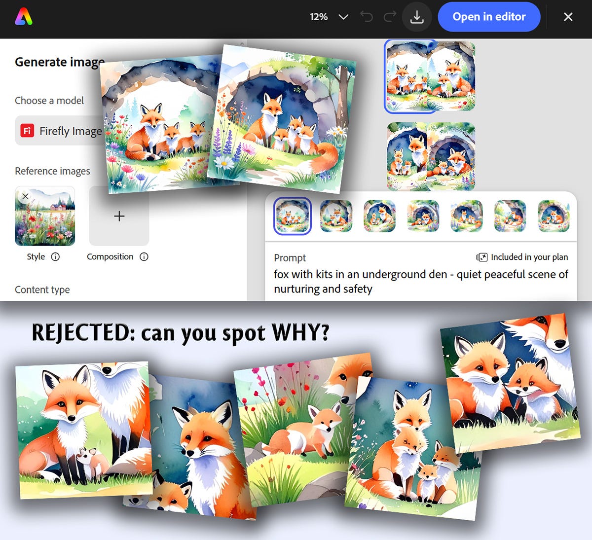 The latter of these - the “seed image” from my Reframes Collection - was used for the imagery on the cards in the first image inside this post, as well as for the foxes imagery just above—which I generated specifically to illustrate this post.
