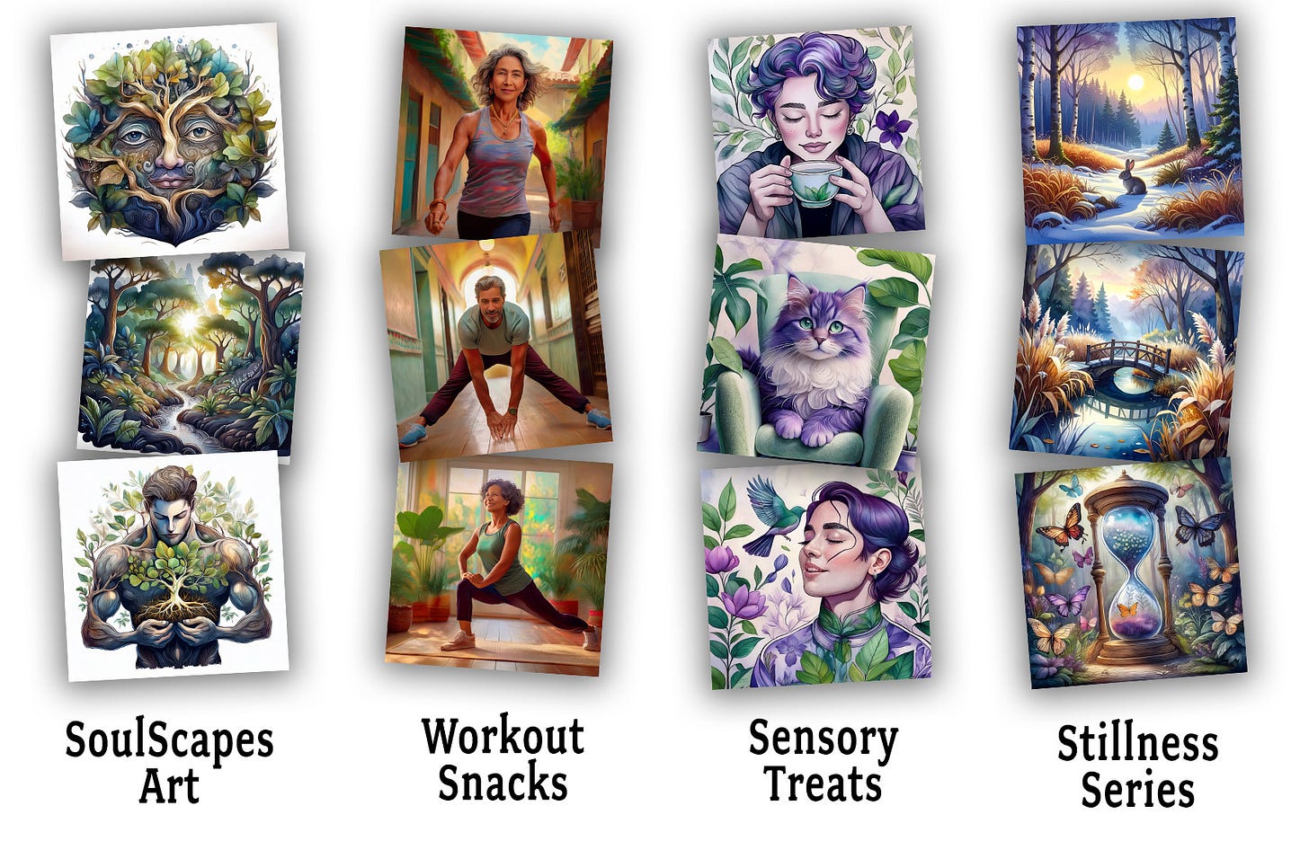 Typically, I save one image for every 4 to 40+ images the AI generates. Any given image I save may be used as-is in some of my cards, horizontally resized (widened) to appear here on Substack, or vertically resized to appear on social media or in full-color edge-to-edge cards. Most images either sit idle inside my digital folders, indefinitely waiting for a home... or one may become a “seed” for a future project.