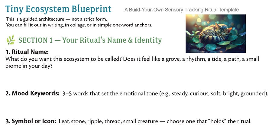 Your rituals, symbols, and objects can form their own biomes—one for rest, one for motion, one for courage. Each interaction, each sensory cue adds to the health of your miniature world. Over time, you stop chasing perfection and start tending balance.